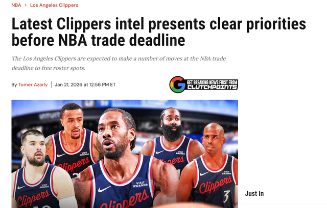北京时间1月22日,快船记者Tomer Amarly对目前球队内部的一些交易流言进行了汇总,...">